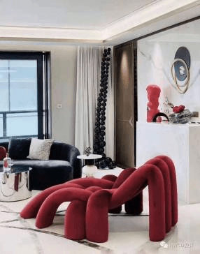 当家里以大面积的米白、浅灰等中性基础色打底时,不妨大胆加入一些富有设计感的家具单品,形成一种反差美!反差越大,风格越浓~