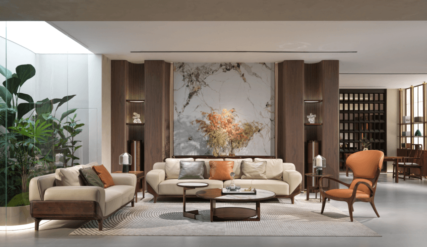若偏爱简约型的家具,材质是解锁高级感的秘诀。一套线条简洁的沙发,框架如果选用精美细腻的北美黑胡桃木等卓越木材,能自然散发出低调优雅的气息;配上平细紧实的德州小公牛皮等优质牛皮坐面,整个家气场全开!整体简约而不简单~