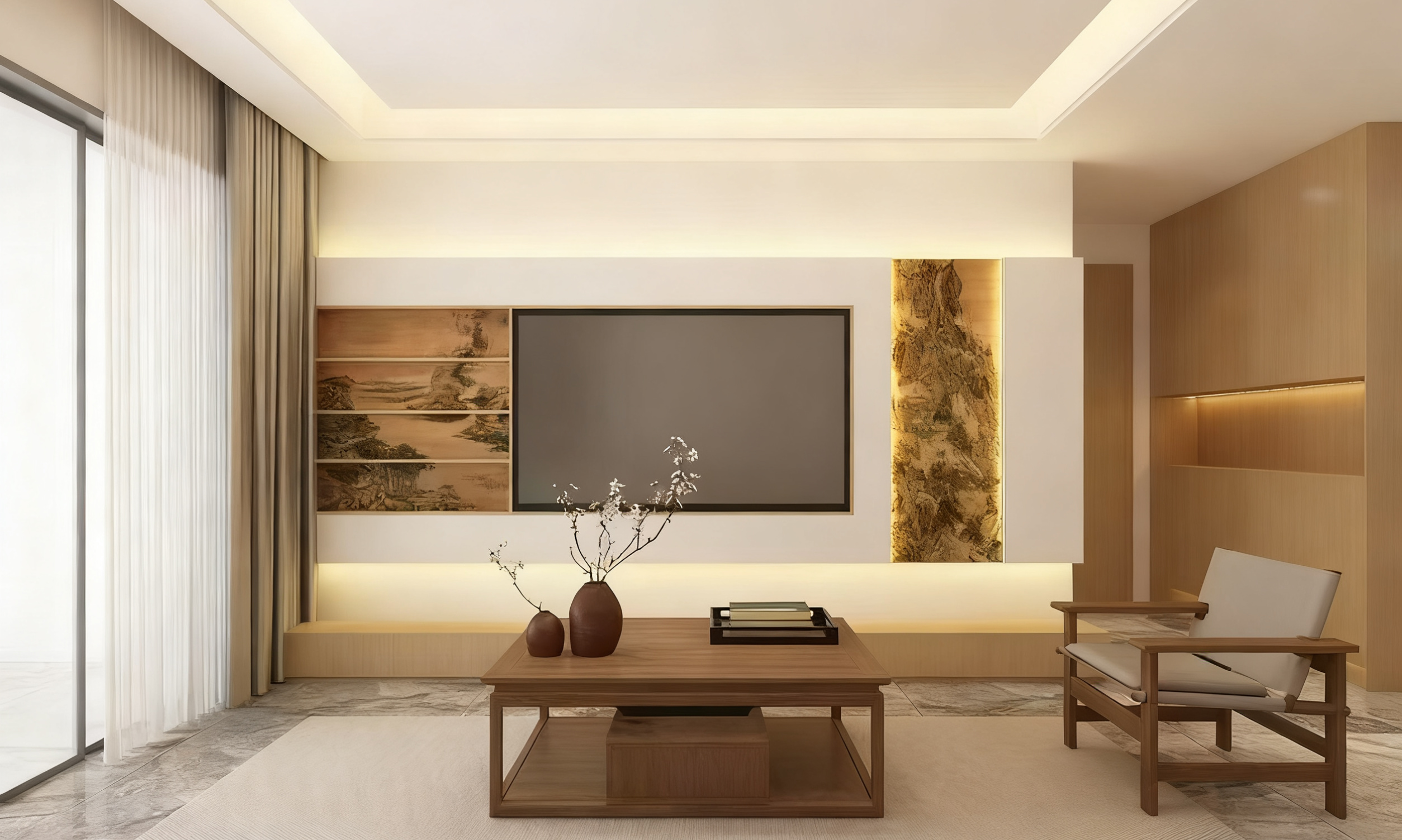 宋式美学强调“大道至简”,家居配色以清浅素雅为核心,常应用70%左右的低饱和色,如米白、浅灰、亚麻、淡赭等,奠定宁静、包容的空间基调。