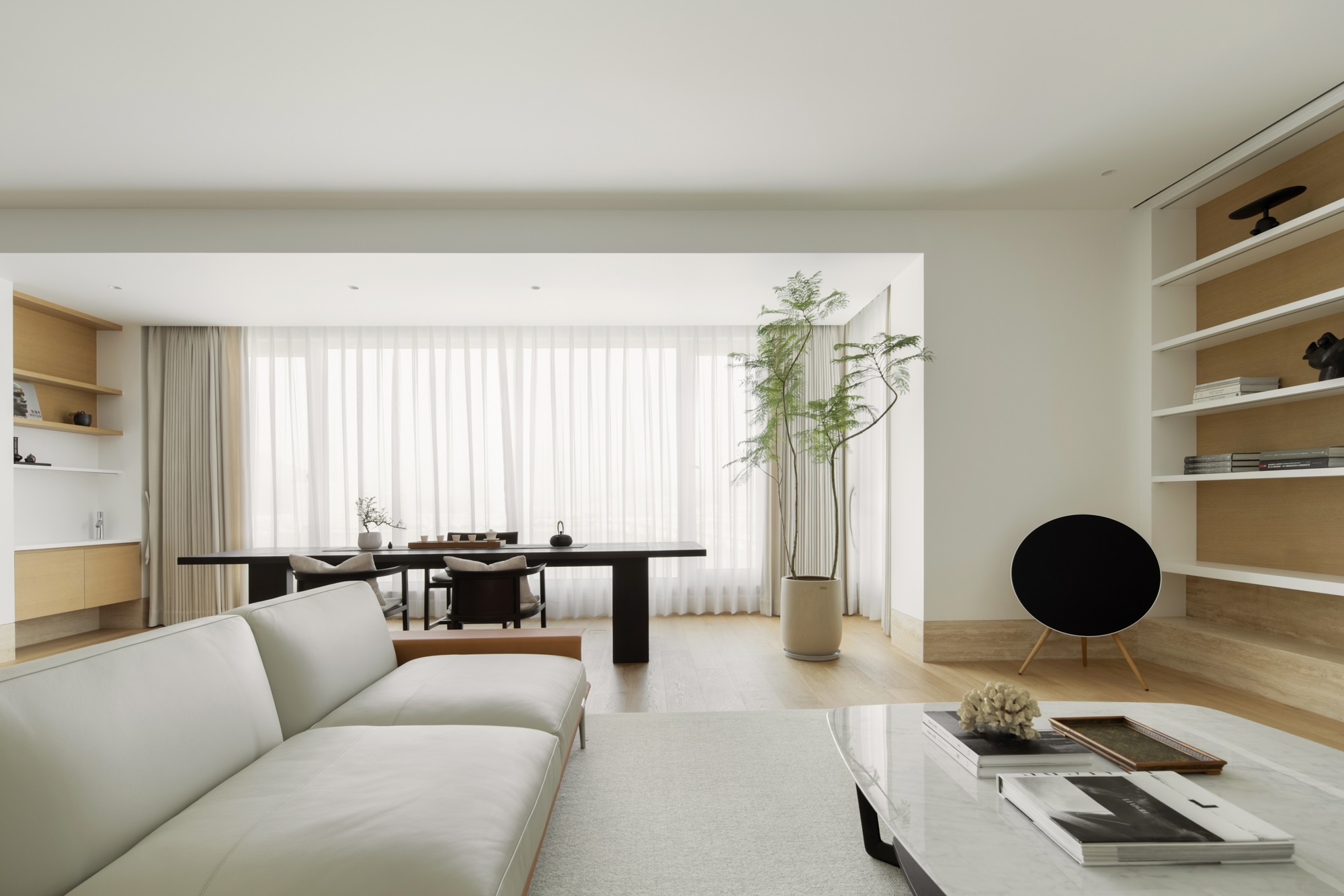 日式侘寂风则更讲究自然之美和肌理质感,在空间中大量运用原木、亚麻、粗陶等天然材质,塑造寂静、质朴的氛围。榻榻米之上,仅以一张矮桌、几把靠背椅、软垫,便可勾勒出一处治愈角落。