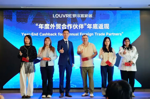除重磅发布新政外,罗浮宫家居还为“年度外贸合作伙伴”颁发荣誉奖项,并给予返现嘉奖,将现场气氛推向高潮。此举既是对合作伙伴卓越贡献的认可,更彰显了平台与合作方共赢共进、共享发展的价值理念。