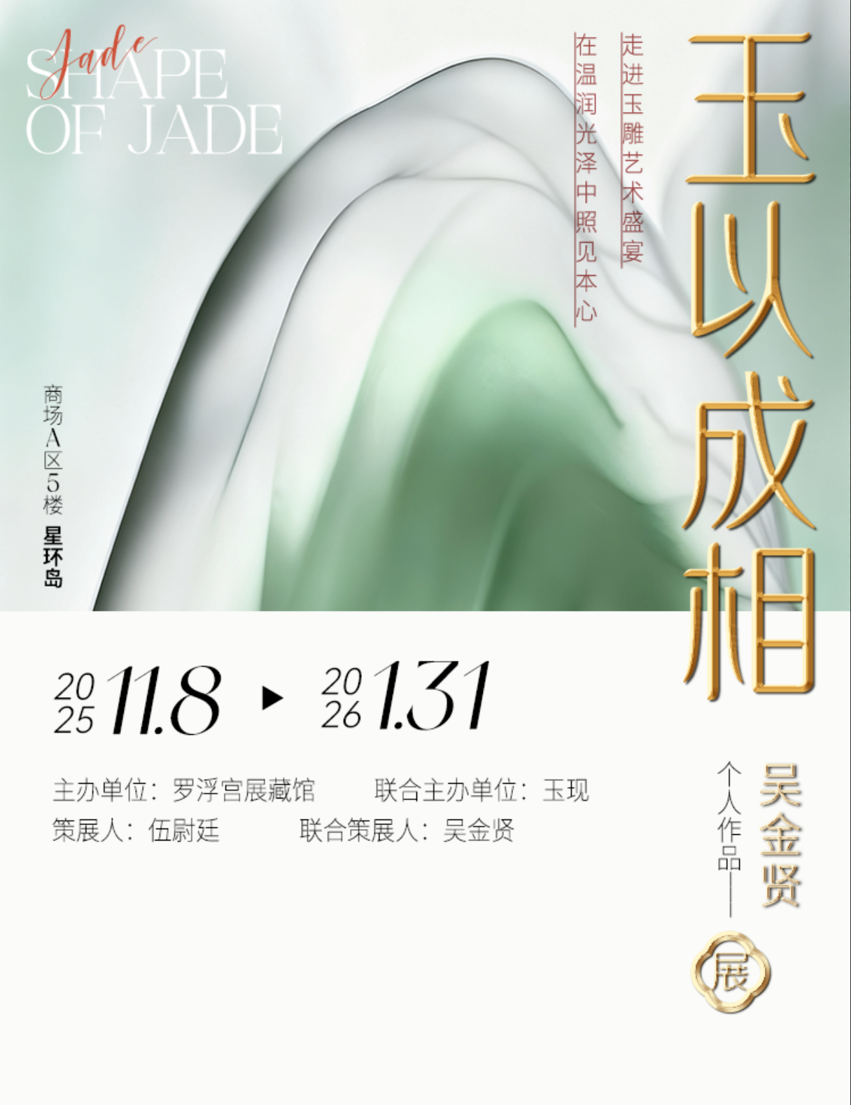 如果说书画是流淌于纸上的情感美学,玉雕则是凝结于石间的千年哲思。在星环岛,玉以成相——吴金贤个人作品展正以其独特的玉雕魅力和深刻的文化内涵,吸引着每一位探寻者的目光。
