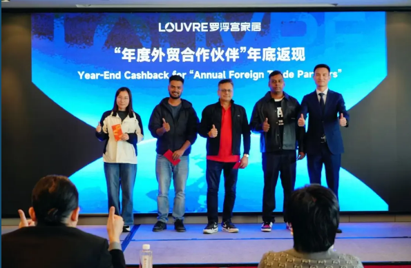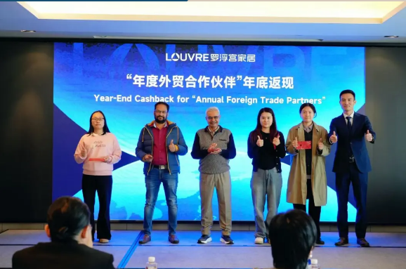 除重磅发布新政外,罗浮宫家居还为“年度外贸合作伙伴”颁发荣誉奖项,并给予返现嘉奖,将现场气氛推向高潮。此举既是对合作伙伴卓越贡献的认可,更彰显了平台与合作方共赢共进、共享发展的价值理念。