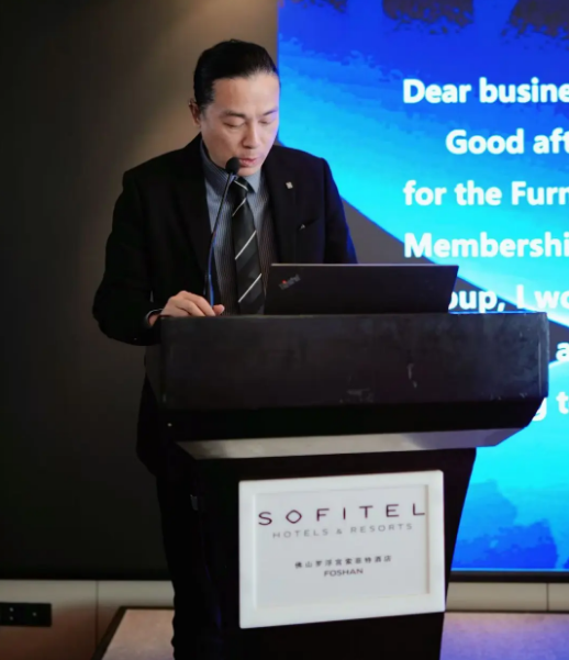 随后,营运管理负责人周松波先生全面复盘2025年度外商企业会员体系建设成效。他指出,广佛地区活跃外贸商超1000家,超半数与罗浮宫家居建立贸易合作,已建立起一个稳定、高质量的外贸服务网络。