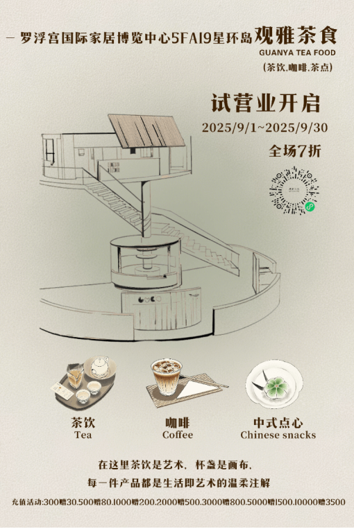 一缕茶香,一抹闲情,商场A区5楼星环岛全新茶歇空间「观雅茶食」,正为你开辟一方疗愈身心的小天地。