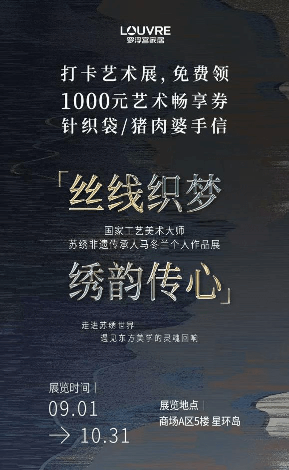 即日起,「丝线织梦 绣韵传心」苏绣艺术展在商场A区5楼星环岛璀璨登场,现场打卡,即刻解锁多重好礼~