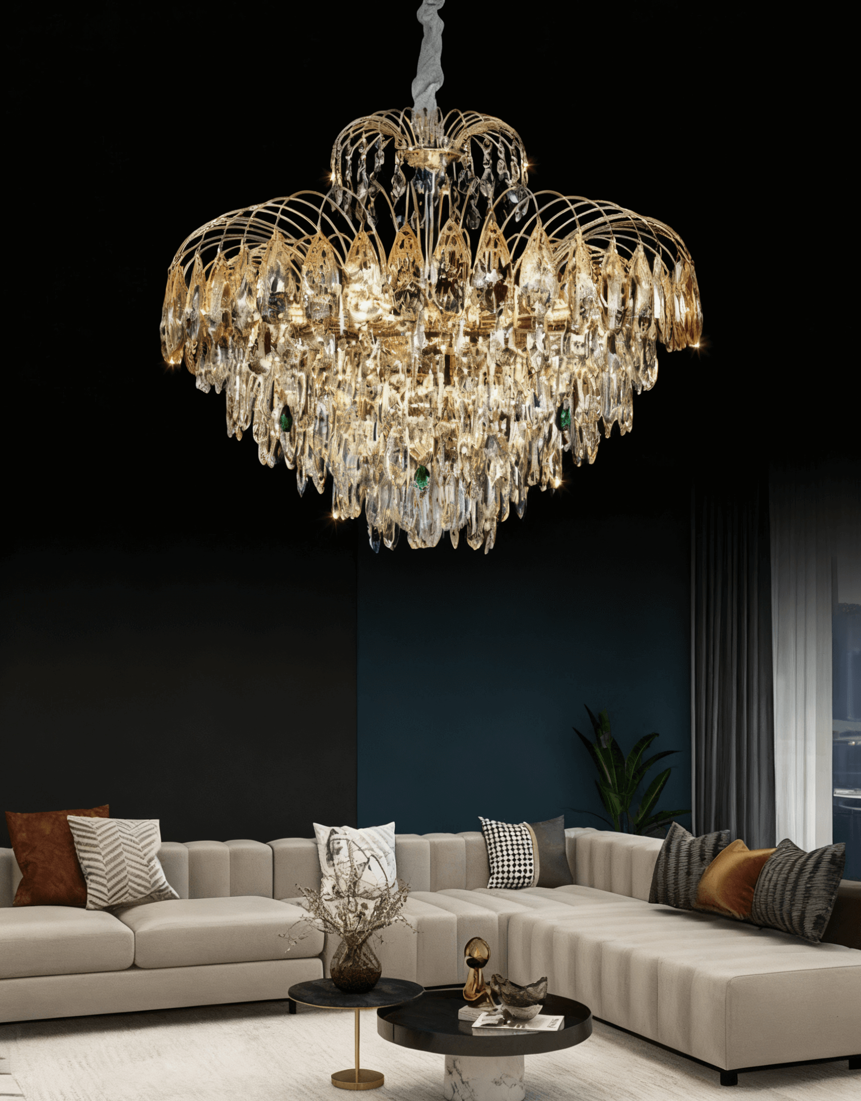 With autumn nights stretching longer, a perfectly chosen light brings the deepest warmth. A crystal chandelier in the living room embodies a ready-to-unveil opulence, especially suited for styles like European, French, or modern luxury. Its leaf-inspired shade artfully frames nature's beauty in light and shadow, and faceted refraction ensures light fills every corner. Paired with a versatile dimming feature, it lets you toggle between bright and warm modes with one click, providing adaptable and comfortable companionship.