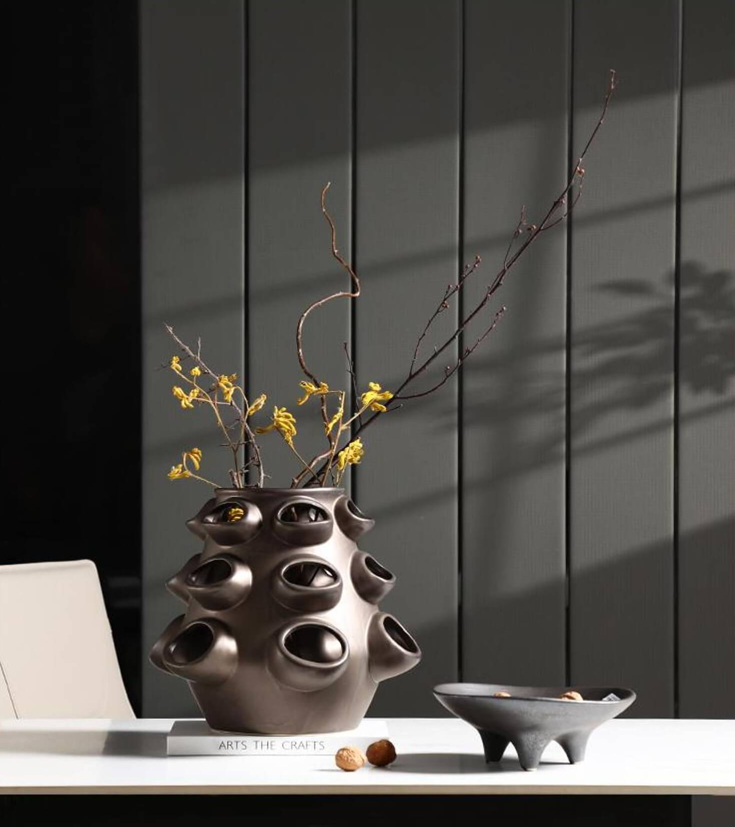 Adorn your countertop with a simple yet elegant ceramic vase, and casually place a few artfully shaped dried blooms or branches in it. This fully showcases the textured charm of wabi-sabi, imbuing the room with a quiet and deeply reassuring sense of calm.