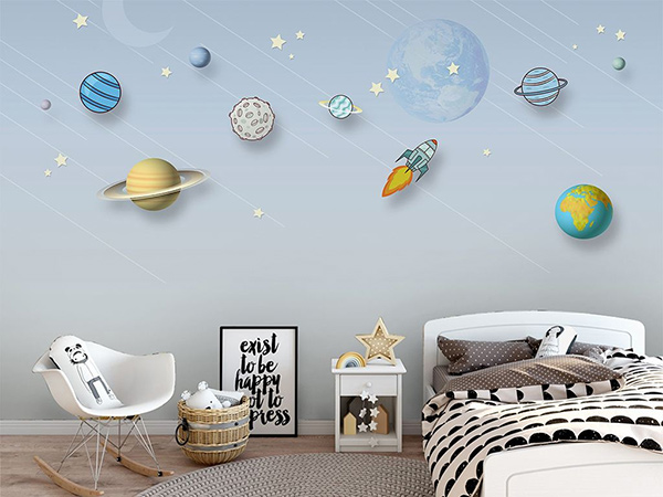 孩子一般都活泼好动,对身边的事物有着满满的好奇心。家居空间内,家具搭配应该有意识地激发孩子的想象力和创造力。儿童房的布置中,可以根据孩子的爱好融入不同的元素,比如宇宙星球、海底世界、森林动物、艺术绘画等激发孩子探索世界的乐趣。如有条件,不妨考虑预留绘画墙,让孩子可以尽情地在上面涂画,挥洒自己的想象力,也是为孩子创造了抒发情绪和传递情感的输出窗口。
