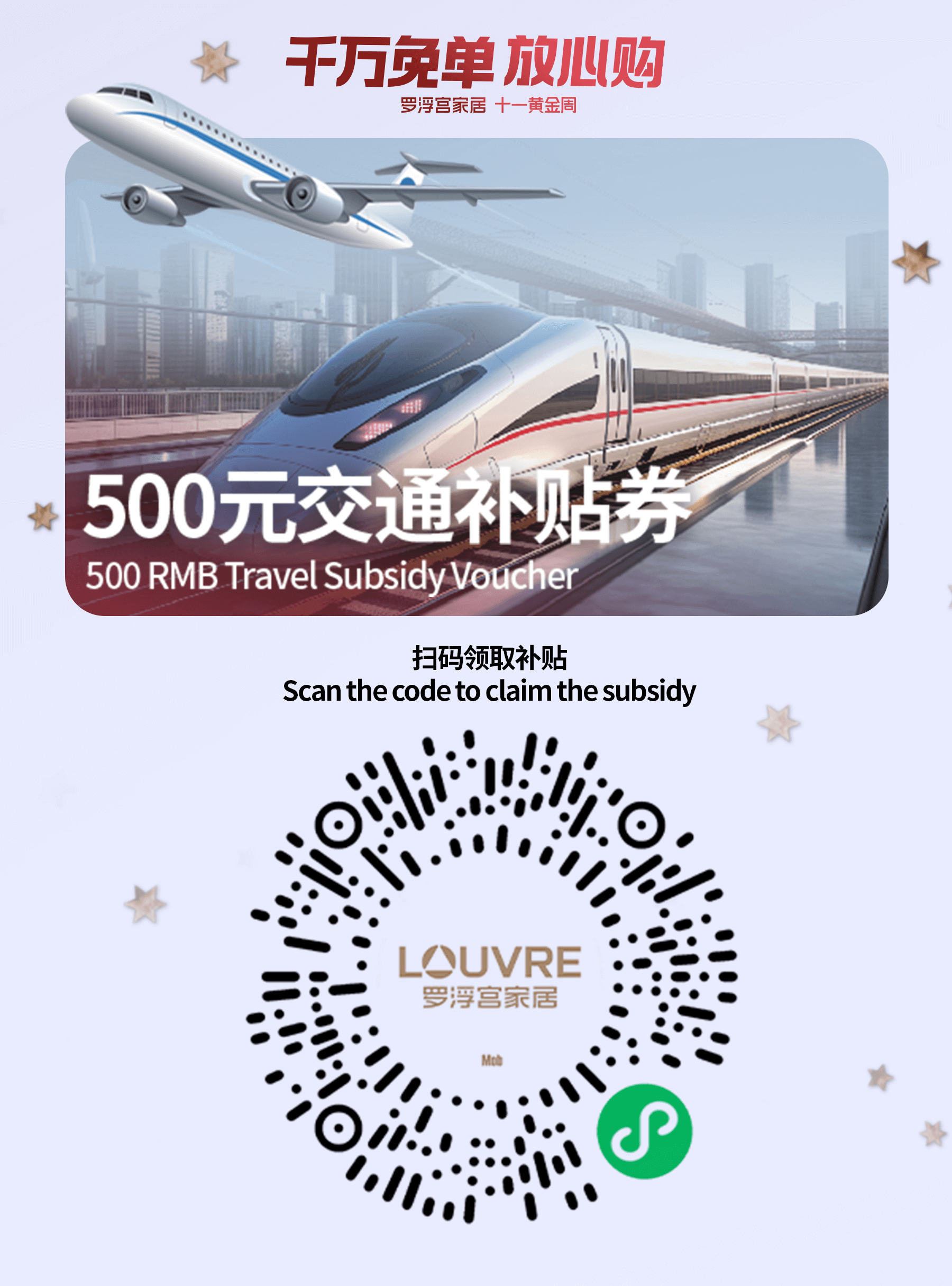 奔赴理想家的路上,佛山罗浮宫家居助你一程一步到位焕新家。注册成为「罗浮宫会员」购物后凭单程票券领交通补贴(机票/高铁/动车均可)每人最高补贴500元!