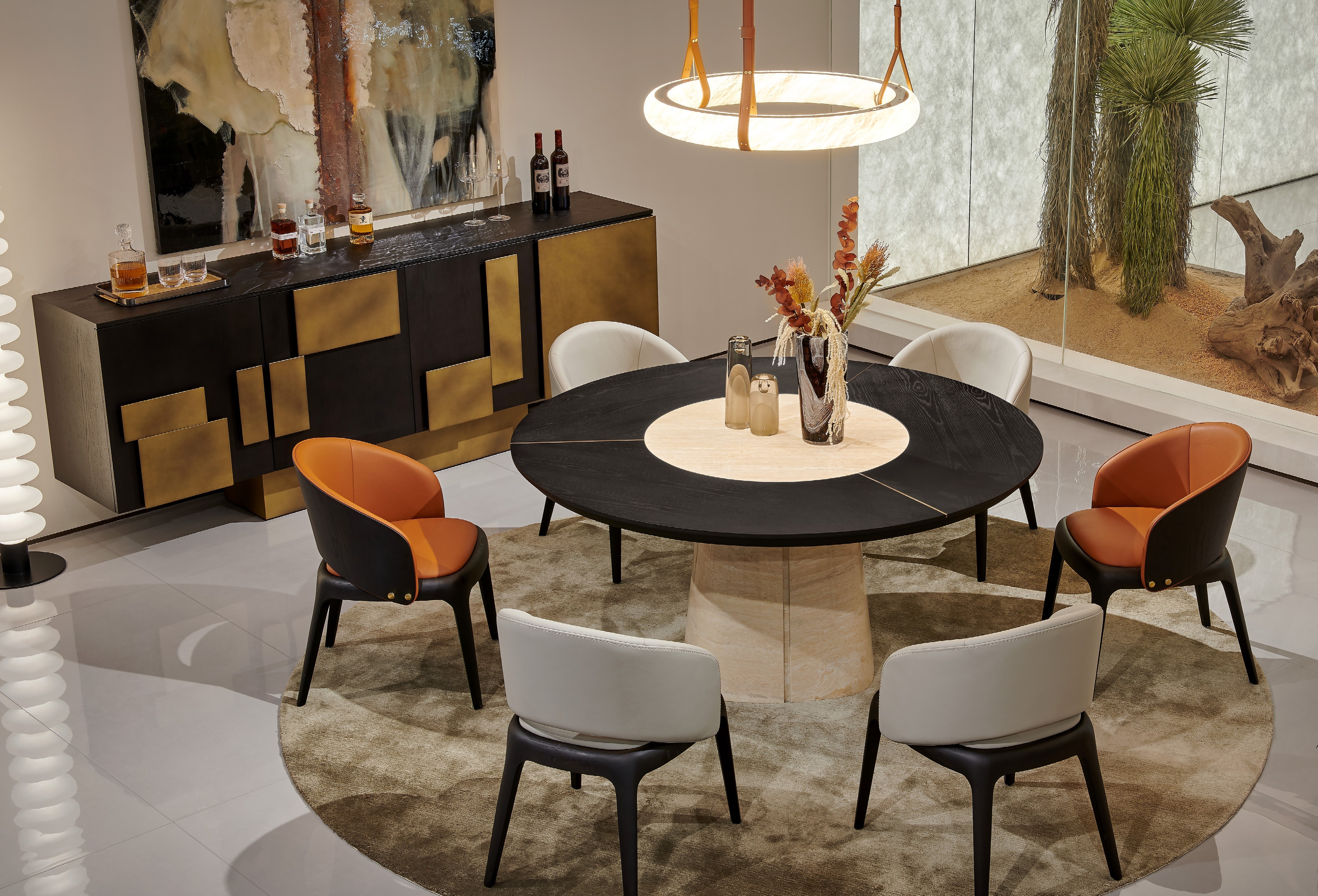万圣节的精髓在于分享与欢聚,一场精心筹备的餐桌派对,能让节日的欢乐达到高潮。从选择一套高颜值餐桌椅开始,为节日氛围注入灵魂。黑与橙的经典碰撞,既呼应节日主题又充满视觉张力,随手一拍都是氛围感大片。天然石材桌面以其独特的纹理与质感,悄然升华用餐体验。