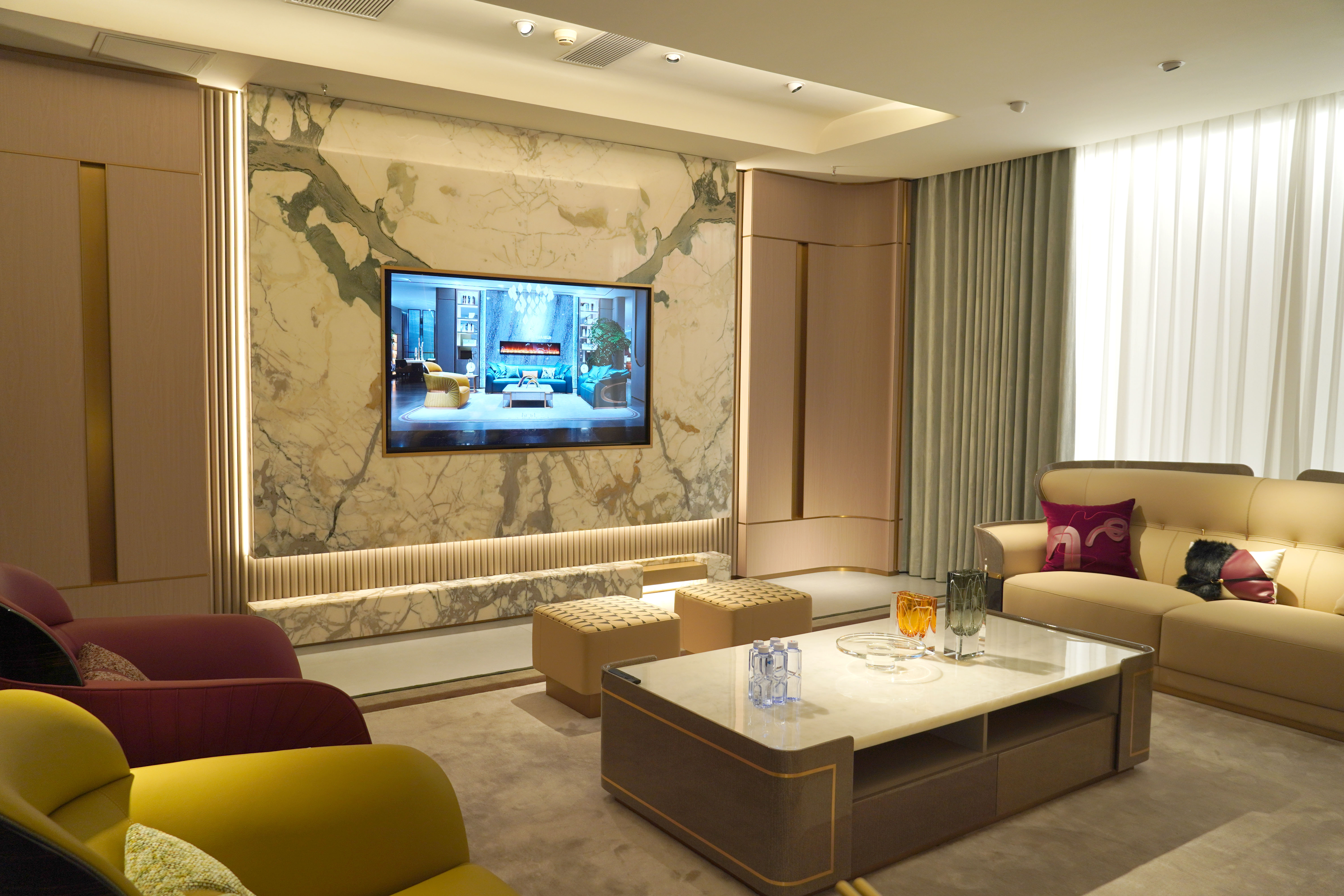 在佛山罗浮宫家居,客厅区是这样打造的: