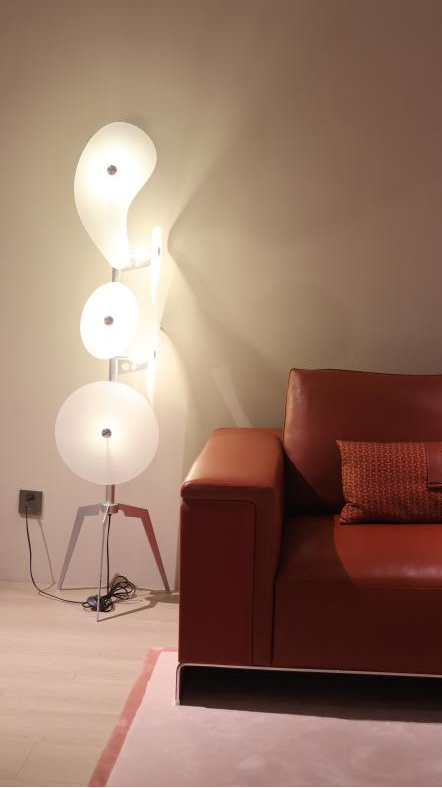 独特的灯杆设计,让光源自然下垂,光线柔和地洒落在沙发一角。当灯光漫射开来,没有刺眼的锋芒,只有如落日余晖般的温柔。它能把墙角、客厅、卧室的一隅,渲染成一幅会呼吸的画。